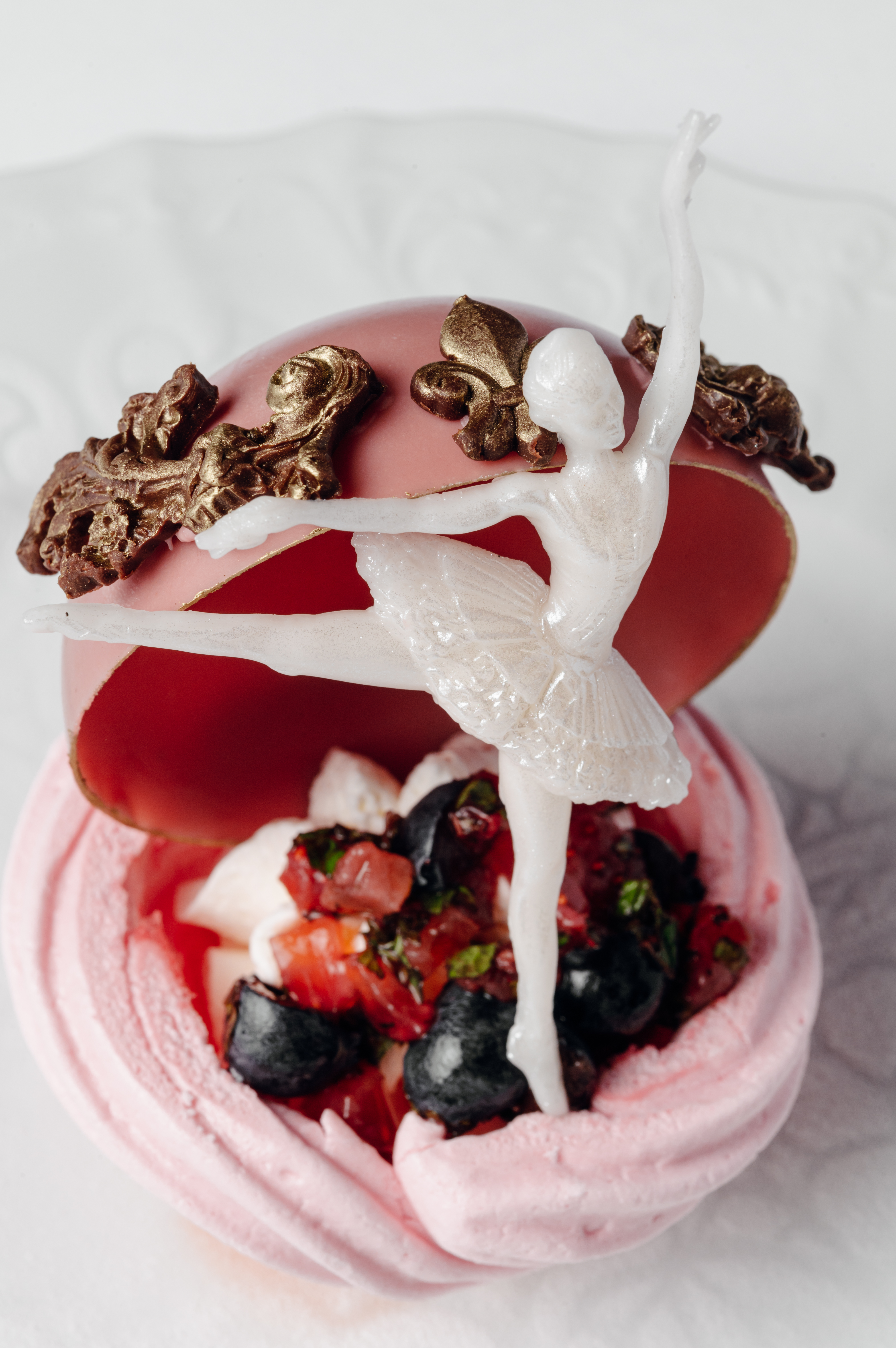 配料:蛋白酥皮、巧克力盒、香缇奶油、浆果鞑靼。