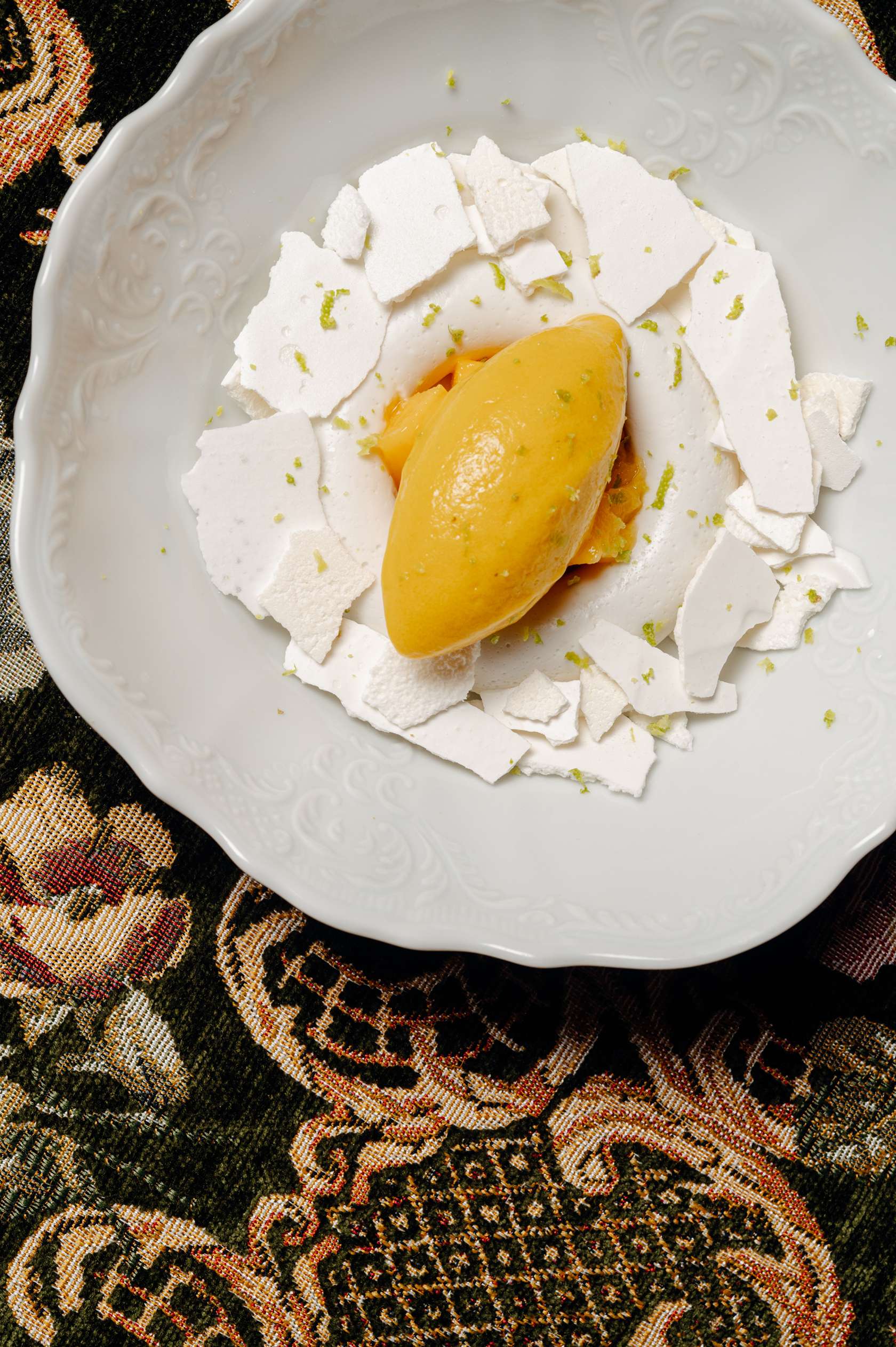 配料:蛋白酥皮、芒果、百香果、椰子、香菜、酸橙